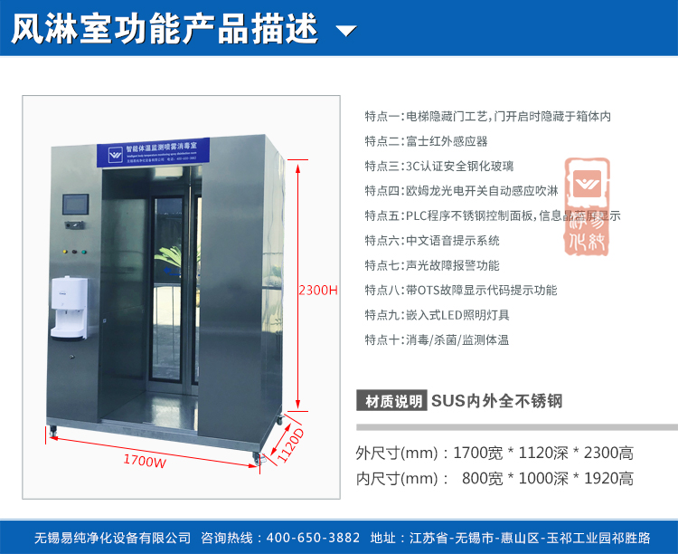 技術(shù)優(yōu)勢:采用微電腦控制,智能感應(yīng)消毒,無人值守模式,消毒時(shí)間可調(diào),單向和雙向消毒,電子門禁功能和溫度監(jiān)控消毒室供用戶選擇。